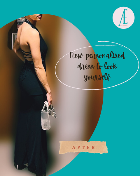 Photo of before and after an alteration I made on a dress with a broken zip.